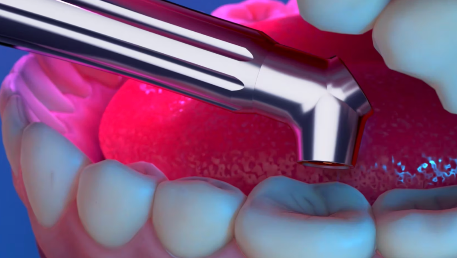 We can also use Solea for implant recovering surgery (second stage surgery) anesthesia-free. Using Solea, we can develop implant emergence instantly without waiting weeks for gum healing. In conjunction with Cerec Cad-Cam system, implant second stage surgery and final implant crown can be done in one visit without pain, bleeding or injections. It provides great value to long distance patients.